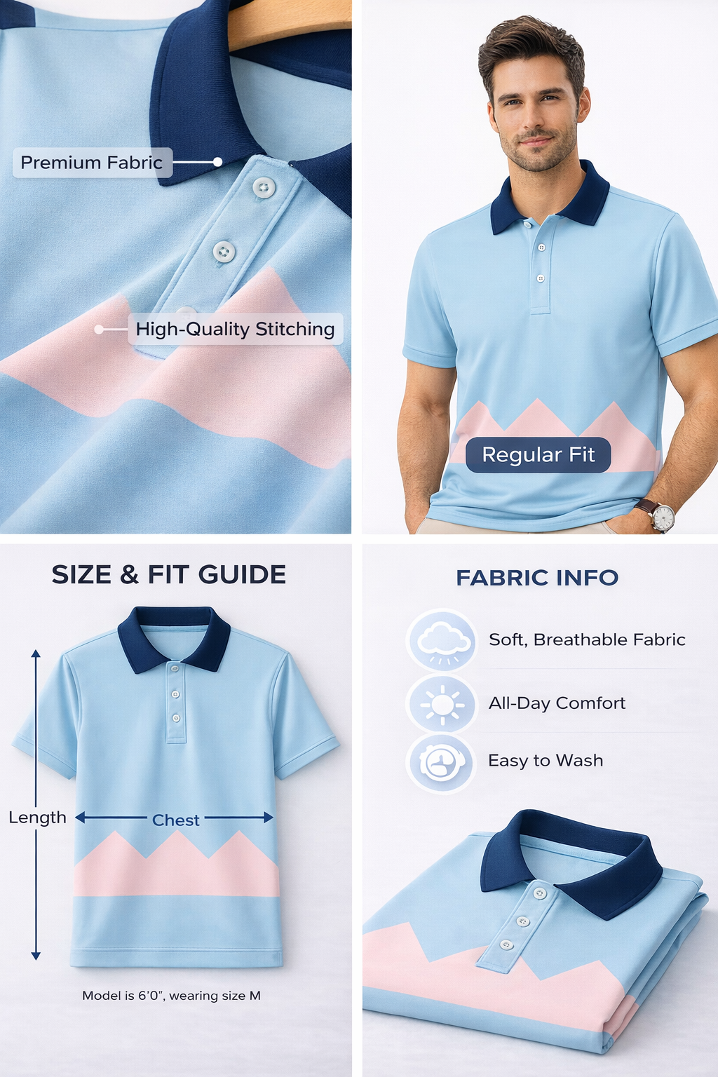 • Premium fabric that retains shape and color after multiple washes